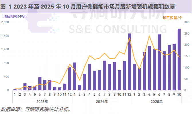 根据寻熵研究院基于公开项目信息的追踪统计,2025 年 1-10 月,我国用户侧储能项目的新增并网项目超 1600 个,装机规模 5.6GW/12.4GWh,项目数量和装机规模同比分别增长 26%和86%。2025 年用户侧储能单月平均新增并网规模已经超过 1GWh。